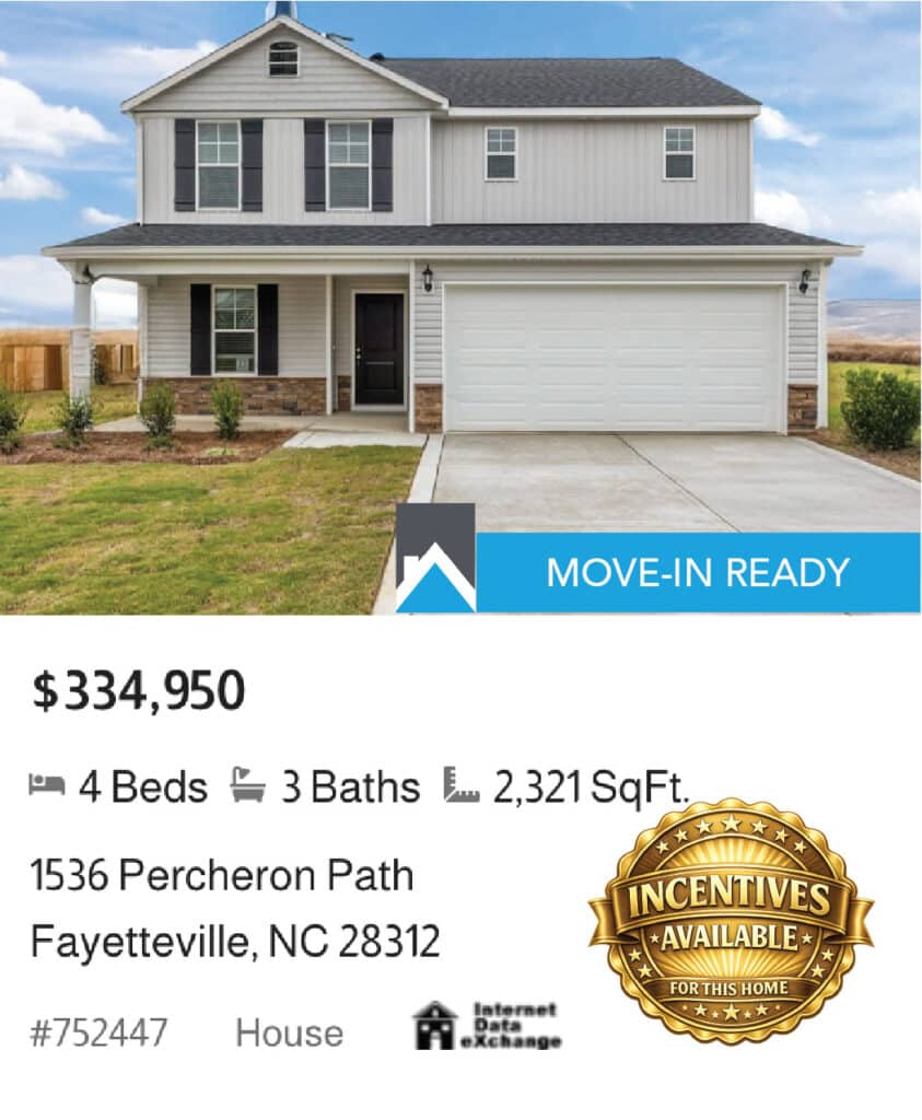 226 Maiden Lane, Fayetteville, NC 28301 Liberty Ridge Lending, LLC Company NMLS ID# 2649030 *Special financing rate offer is paid for by Ben Stout Construction. Offer is for select Ben Stout Construction home contracts signed between 01/01/2026 and 02/28/2026. Buyer must use Liberty Ridge Lending to finance the loan. Not to exceed seller concession limits. Total interested party contributions are subject to limitations. Loan will have a 6.409% Annual Percentage Rate (APR). Rates are effective as of 101/01/2026 are for illustrative purposes only and are subject to change. Interest rate based on a 30-year FHA loan with a 3.5% down payment on a $299,950 purchase price, and assumes a minimum 680 credit score for the borrower. Lower credit scores may result in higher costs to the borrower. To receive the promotional interest rates, home purchased must be the borrower’s primary residence. For a $294,516 loan, the monthly Principal & Interest (P&I) payment is $1,579.23. The estimated monthly payment does not include tax, insurance premiums or mortgage insurance (MI). The actual payment amount will be greater. Additional requirements, restrictions, and underwriting conditions may apply. Speak with your loan officer for details. You are NOT required to use Liberty Ridge as a condition to purchase a home, but you are required to use Liberty Ridge to qualify for certain Builder Name incentives or promotions. Not a commitment to lend. Borrower must meet qualification criteria. Images are for illustrative purposes only and may not represent the actual appliances included.