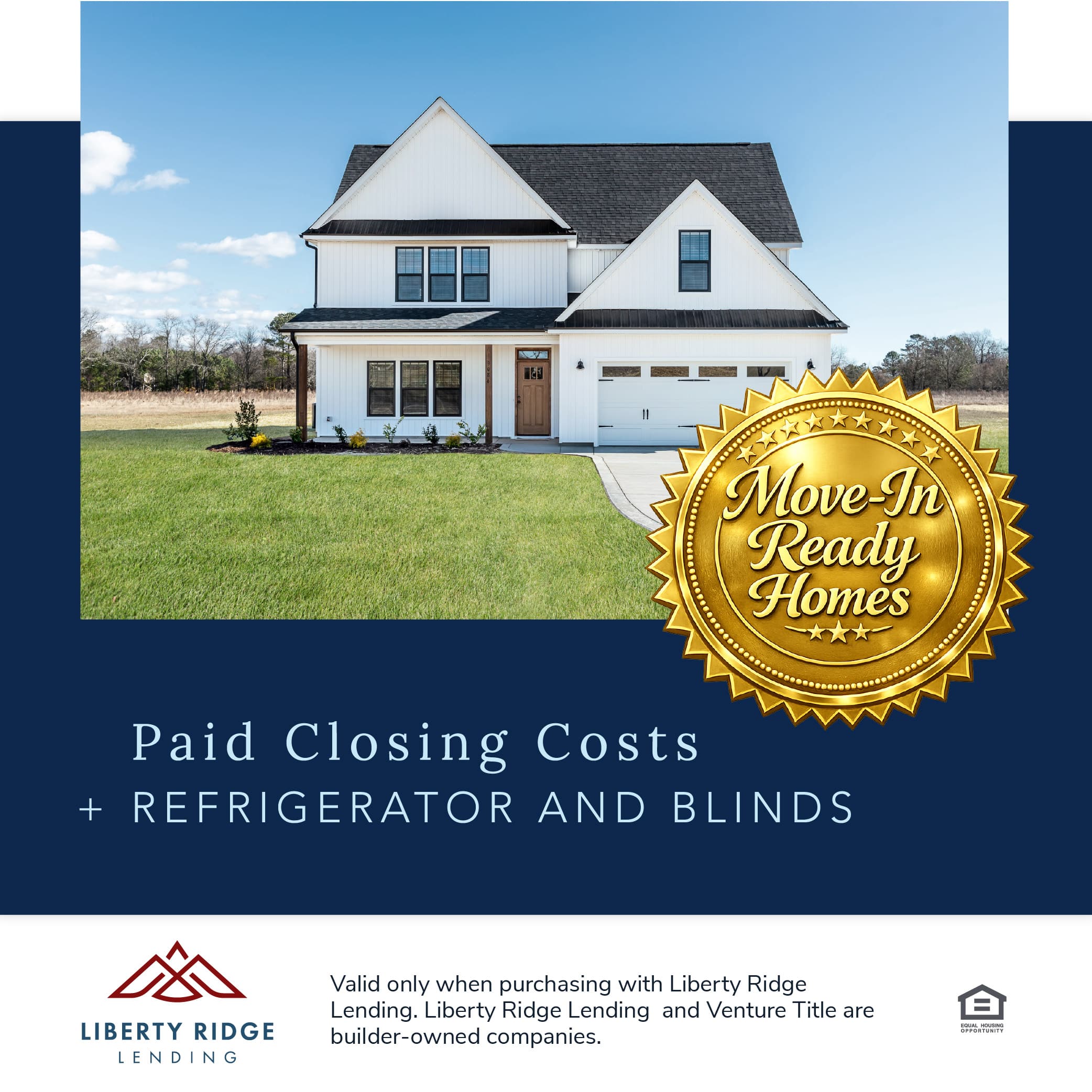 226 Maiden Lane, Fayetteville, NC 28301 Liberty Ridge Lending, LLC Company NMLS ID# 2649030 *Special financing rate offer is paid for by Ben Stout Construction. Offer is for select Ben Stout Construction home contracts signed between 01/01/2026 and 02/28/2026. Buyer must use Liberty Ridge Lending to finance the loan. Not to exceed seller concession limits. Total interested party contributions are subject to limitations. Loan will have a 6.409% Annual Percentage Rate (APR). Rates are effective as of 101/01/2026 are for illustrative purposes only and are subject to change. Interest rate based on a 30-year FHA loan with a 3.5% down payment on a $299,950 purchase price, and assumes a minimum 680 credit score for the borrower. Lower credit scores may result in higher costs to the borrower. To receive the promotional interest rates, home purchased must be the borrower’s primary residence. For a $294,516 loan, the monthly Principal & Interest (P&I) payment is $1,579.23. The estimated monthly payment does not include tax, insurance premiums or mortgage insurance (MI). The actual payment amount will be greater. Additional requirements, restrictions, and underwriting conditions may apply. Speak with your loan officer for details. You are NOT required to use Liberty Ridge as a condition to purchase a home, but you are required to use Liberty Ridge to qualify for certain Builder Name incentives or promotions. Not a commitment to lend. Borrower must meet qualification criteria. Images are for illustrative purposes only and may not represent the actual appliances included.