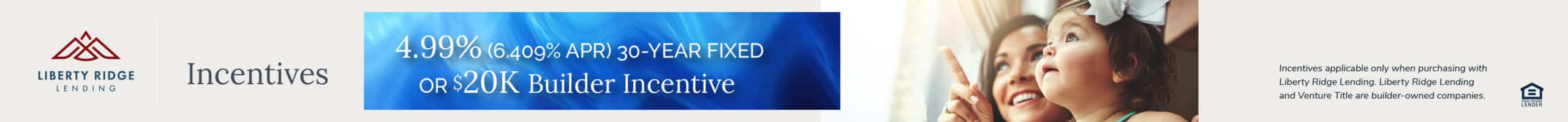*Special incentives provided by Ben Stout Construction. Not all applicants will qualify. Rates, fees, terms, and programs are subject to change without notice. Not all loans, loan sizes, or products may apply. Loans are subject to borrower qualifications, including income, property evaluation, sufficient equity in the home to meet loan-to-value requirements, and final credit approval. Approvals are subject to underwriting and program guidelines and are subject to change without notice. Additional requirements, restrictions, and underwriting conditions may apply. Speak with your loan officer for details. You are NOT required to use Liberty Ridge Lending as a condition to purchase a home, but you are required to use Liberty Ridge to qualify for certain Ben Stout Construction incentives or promotions.