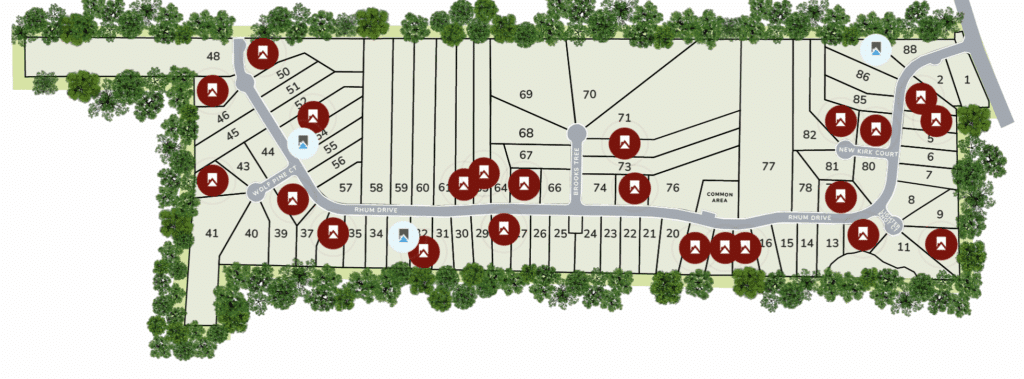 Site map is for illustrative purposes only. Homes listed here may be under contract. Please contact Ben Stout Construction for availability.