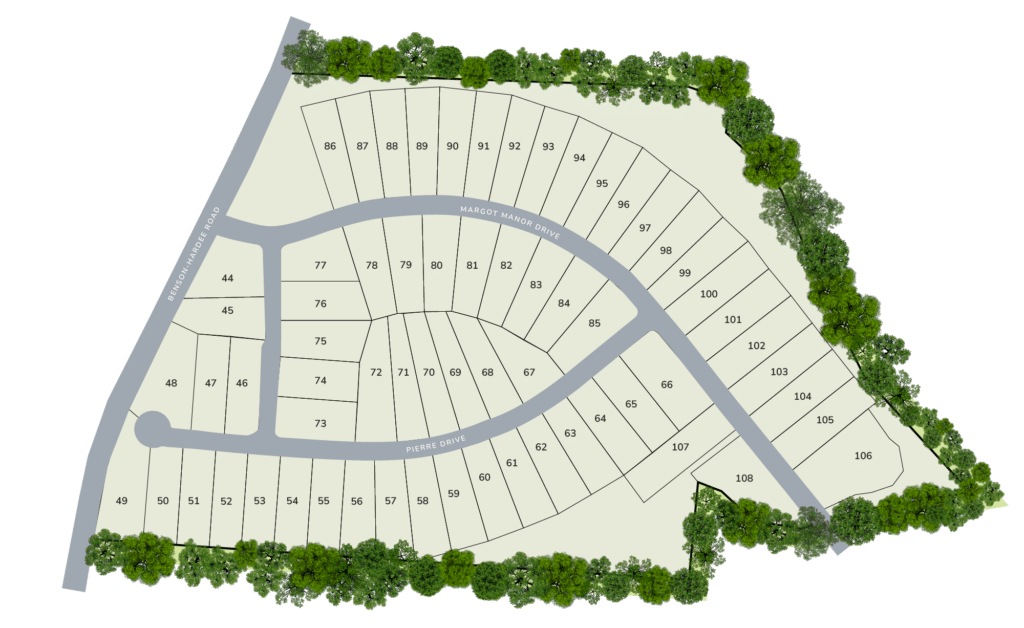 Margot Manor is a new community in Benson, tucked just off Benson-Hardee Road with a quieter, wooded feel and cul-de-sac homesites that give the neighborhood a little extra breathing room. It’s set up for easy everyday access to the places people actually use, with quick routes to key highways and an easy drive to Raleigh, Fayetteville, and Goldsboro, plus it’s close to Campbell University.